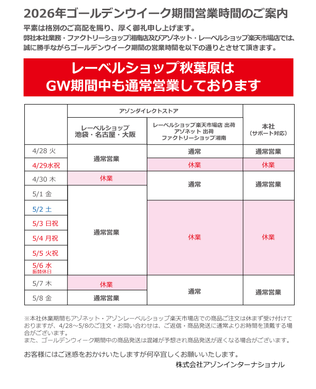 対象店舗:レーベルショップ秋葉原・池袋・名古屋・大 阪、ファクトリーショ ップ湘南